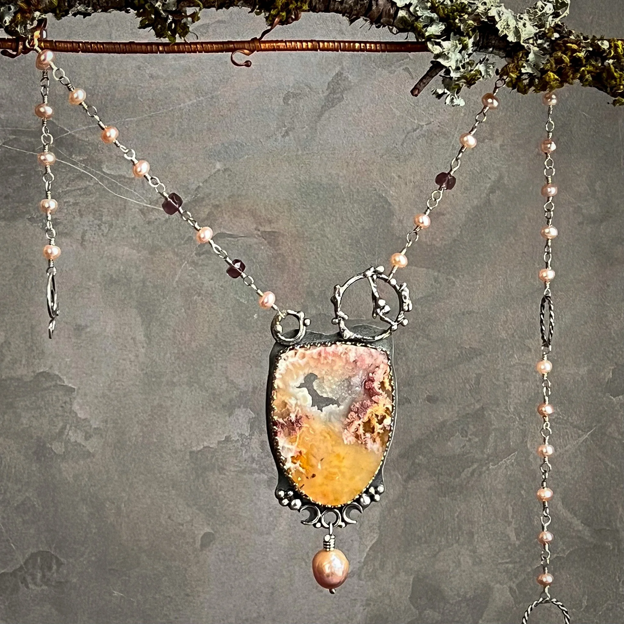Heart and Soul: Plume Agate,, Pearls, Fluorite and Sterling