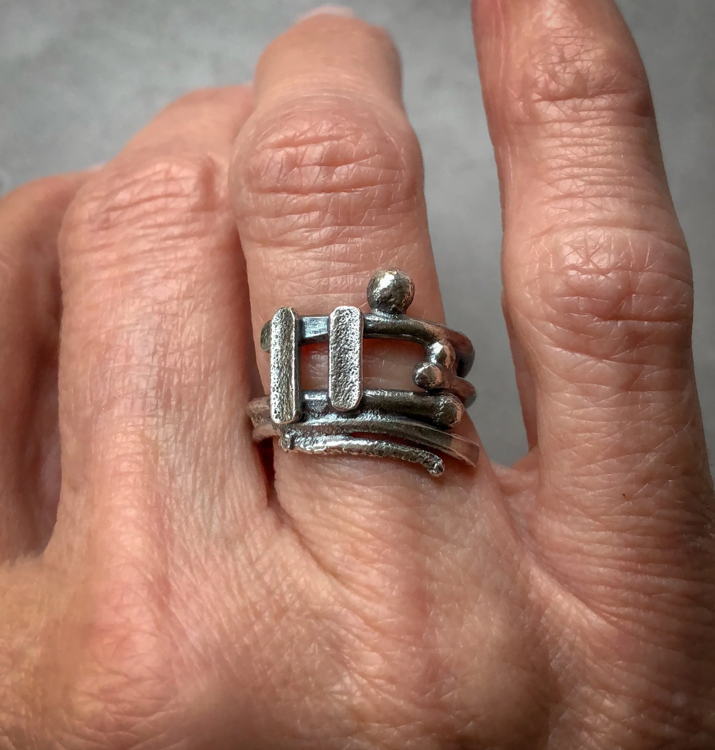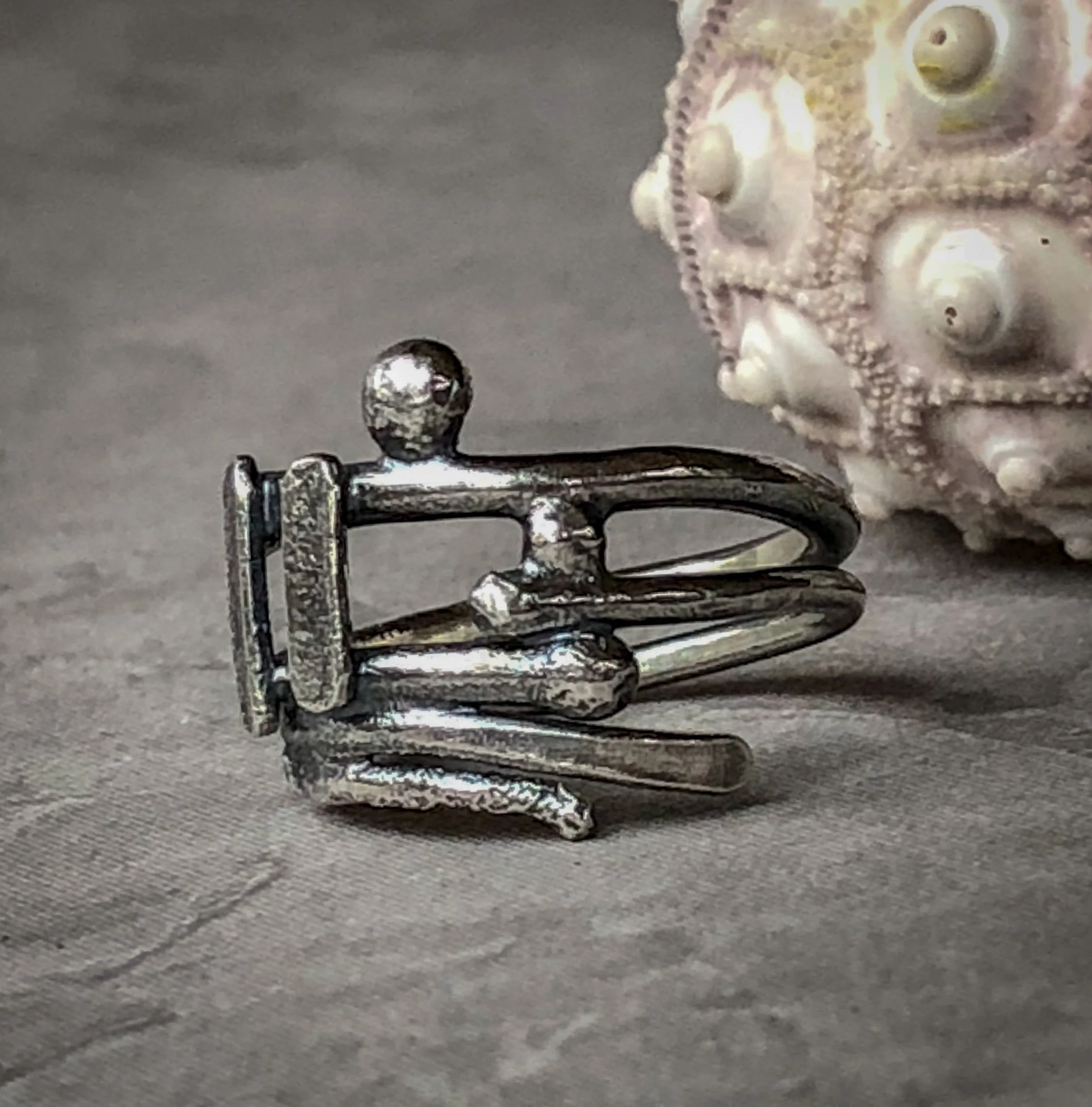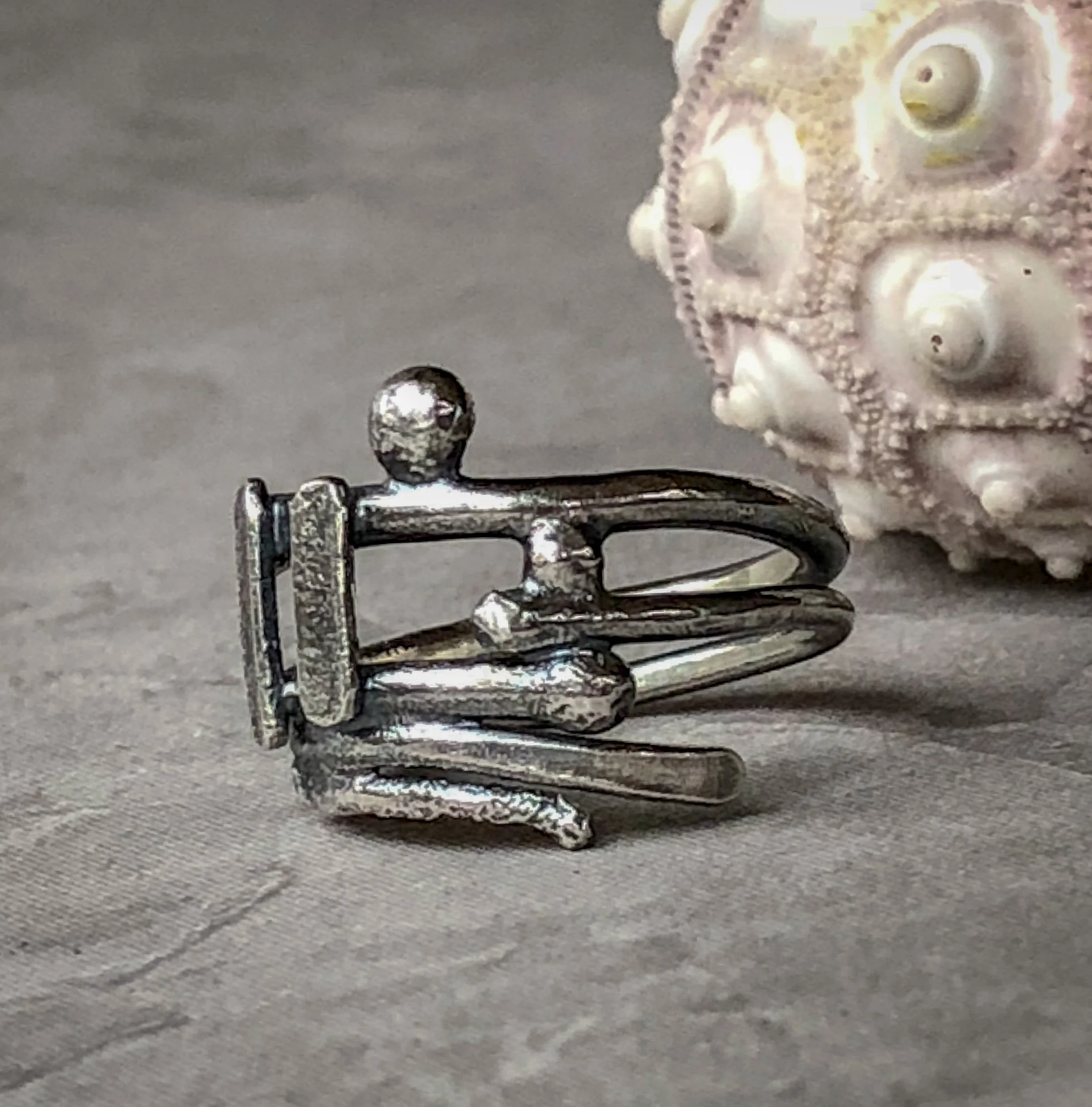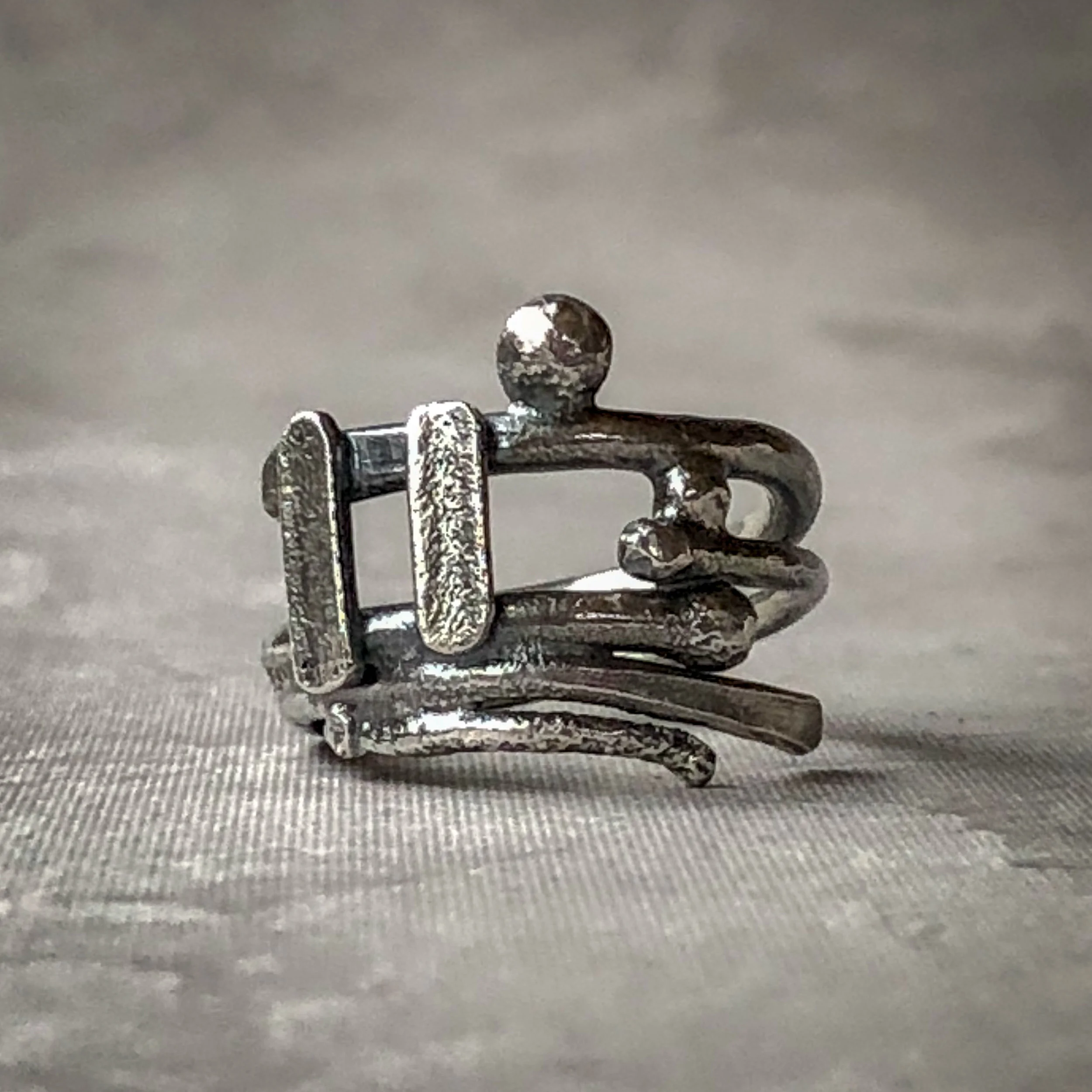 Finger Modern Raw Fused Sterling Ring PreviousNew Moon Vibe Ring with Olive Quartz and Pink Tourmaline NextMen's Organic Fused Sterling Ring Modern Raw Fused Sterling Ring Modern Raw Fused Sterling Ring $130.00 Very organic, textured, raw sterling silver ring. Handmade, one of a kind sculptural band that has the look of several stackers.Size: 5 1/21/2 at widest section. Add To Cart Facebook0 Twitter LinkedIn0 Reddit Tumblr